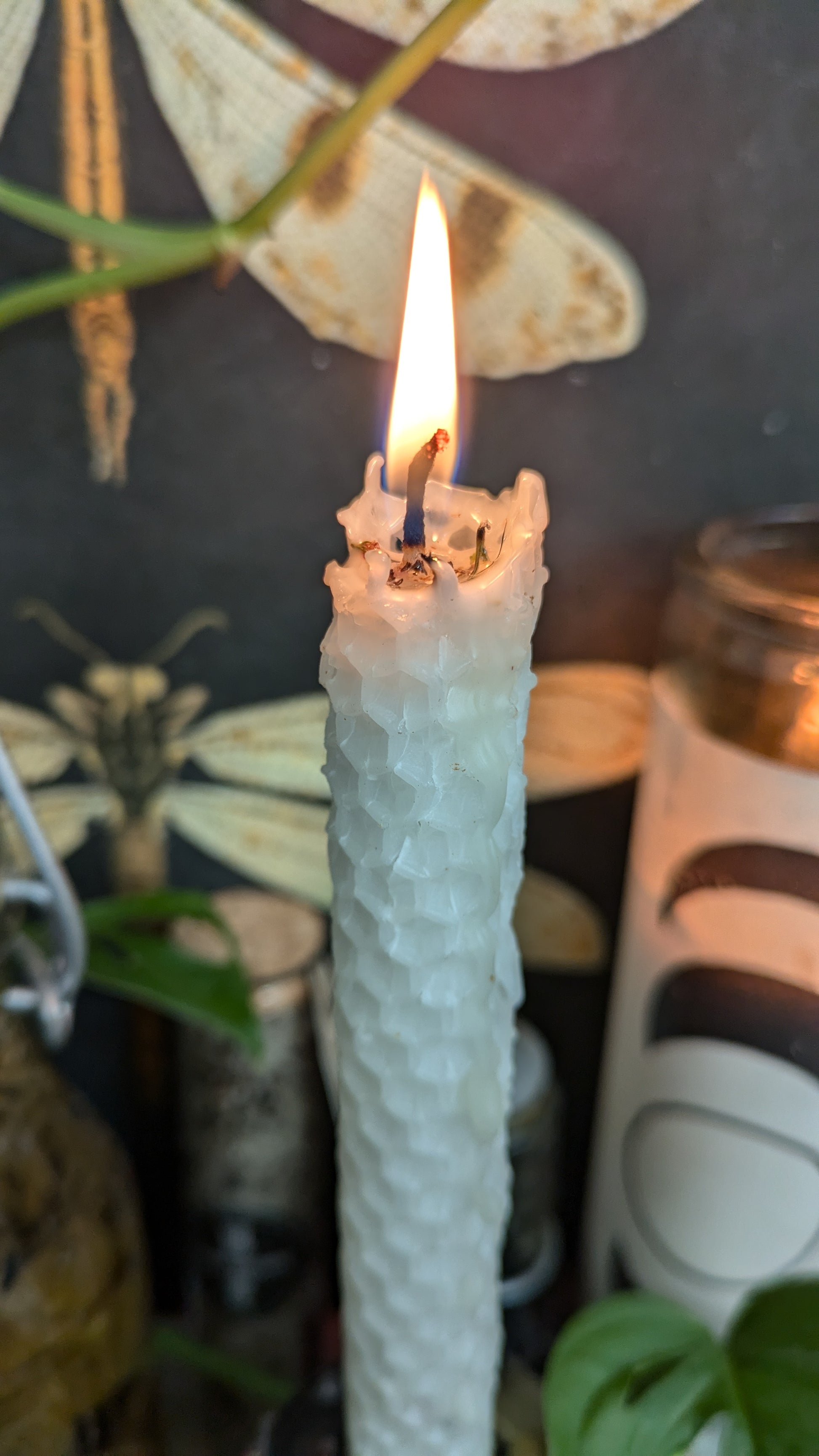 Allumez cette flamme lors des nuits de pleine lune, de nouvelle lune, ou à tout moment où vous souhaitez semer une intention. Laissez la lueur argentée purifier vos pensées, guider vos souhaits et ouvrir la voie à la transformation.