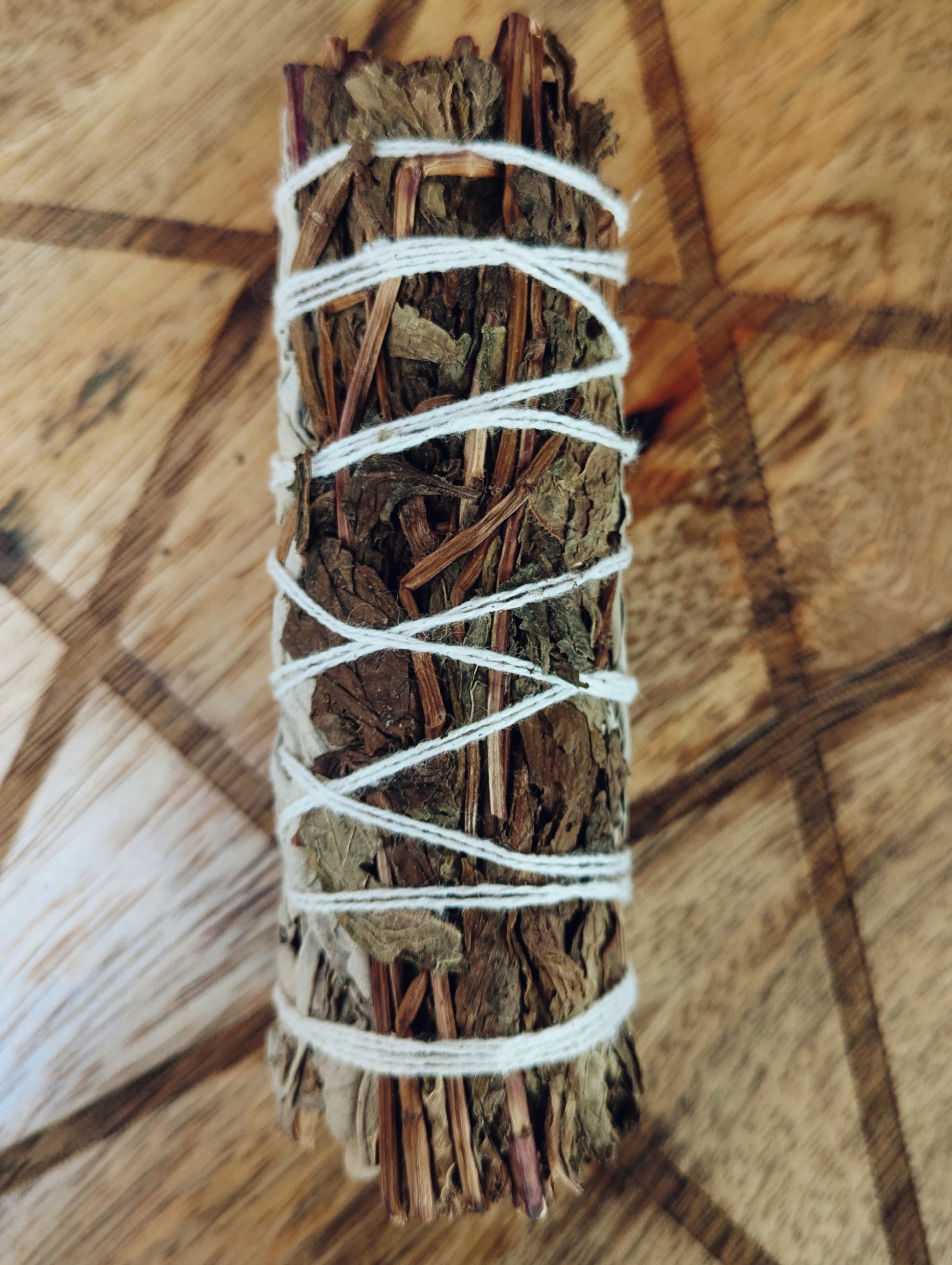 - Brûler l'extrémité du bâton, attendre que la flamme prenne puis laisser agir la fumée.