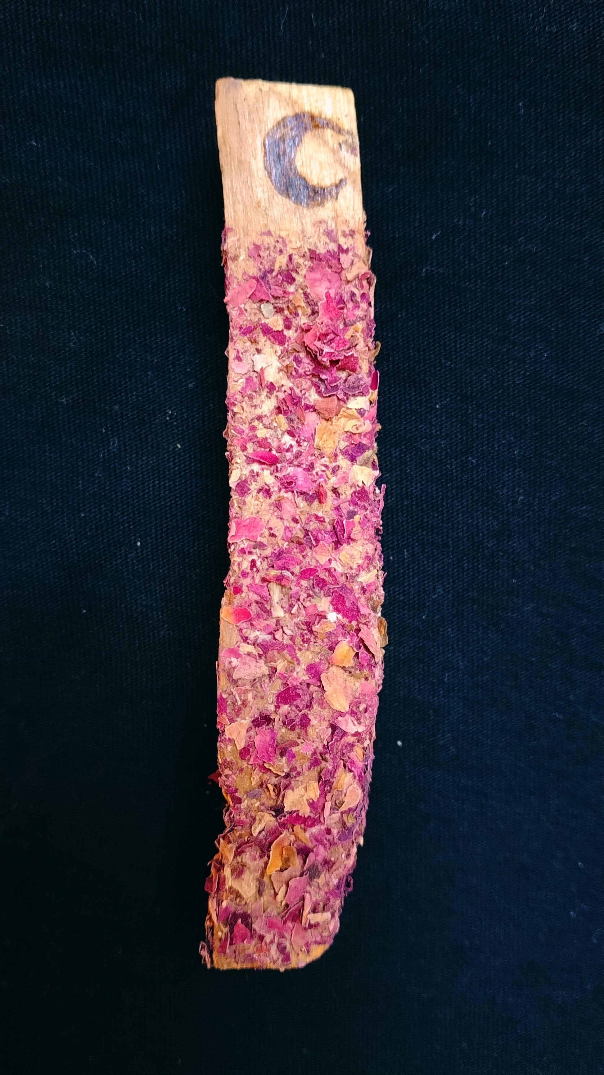 Ce bâton de Palo Santo naturel est délicatement enrobé de pétales de rose séchés, alliant la puissance purificatrice du bois sacré à la douceur vibratoire de la rose.