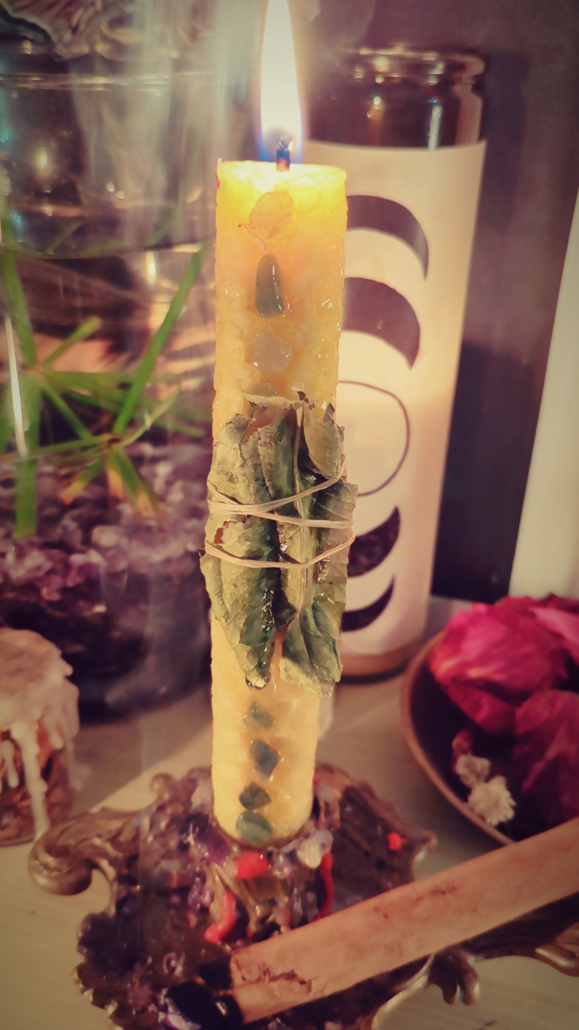 * comme tous rituels impliquant l'utilisation d'une bougie il est nécessaire de toujours rester présent le temps de sa combustion et d'assurer sa sécurité tous le long du rituel en prévoyant un moyen d'éteindre la bougie si nécessaire.