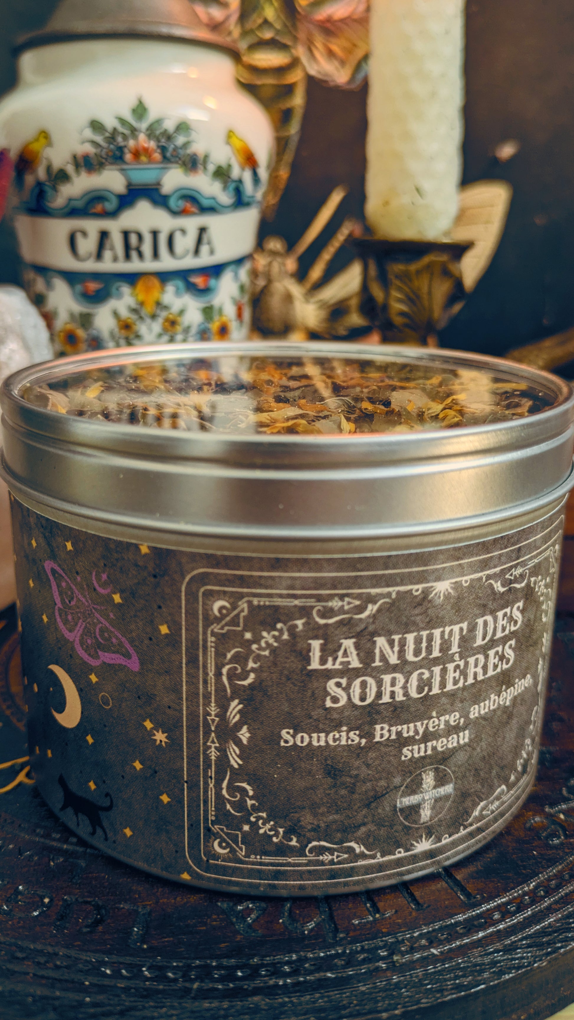 Ce mélange a été pensé pour honorer le Sabbat de Samhain, moment sacré qui marque le nouvel an des sorcières : une période où le voile entre les mondes s’affine, propice aux rituels de passage, de transformation et de guidance spirituelle.